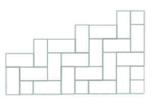 Les pavés sont systématiquement décalés d’un demi-pavé par ligne. Il s’agit d’un motif qui peut être posé rapidement : méthode de pose la plus fréquente.