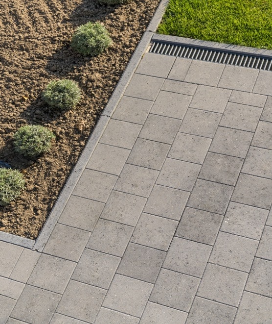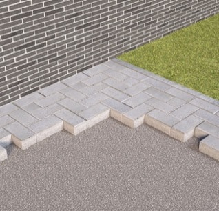 Commencez par poser une ou deux rangées de pavés en béton (en pose rectiligne) contre les bordures. Placez les pavés en béton les uns contre les autres. Nos pavés en béton sont dotés de petits écarteurs.