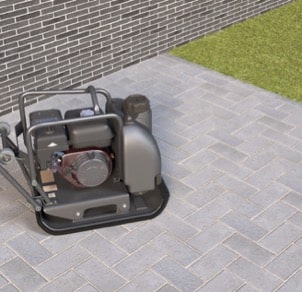 Ensuite, la surface peut être damée avec une plaque vibrante munie d’une semelle en caoutchouc.